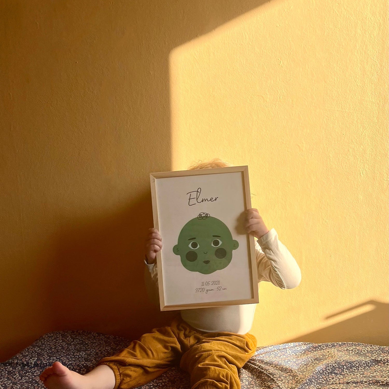 Navneplakat grøn | Plakat med navn, fødselsdato og mål