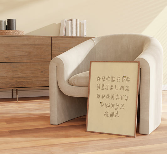 Lær og leg med farverige ABC- og læringsplakater til børn, der gør læring sjov og inspirerende. Skabt til at pynte og inspirere i børneværelset, samtidig med at de understøtter børns udvikling og fantasi.
