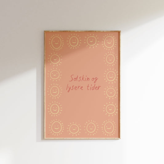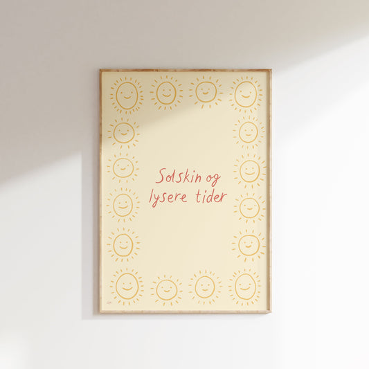 Solskin og lysere tider | Plakat med tekst og små sole