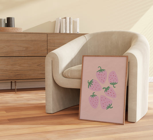 Berry Bliss | Plakat med lyserøde jordbær