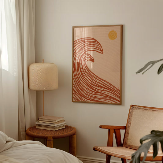Ocean Flow | Plakat med en bølge og en sol