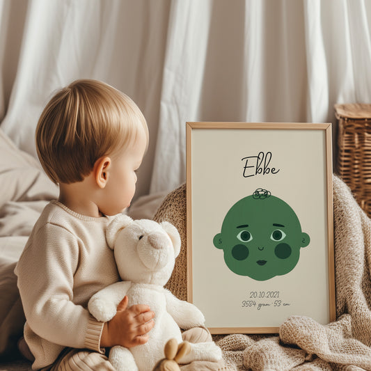 Navneplakat grøn | Plakat med navn, fødselsdato og mål