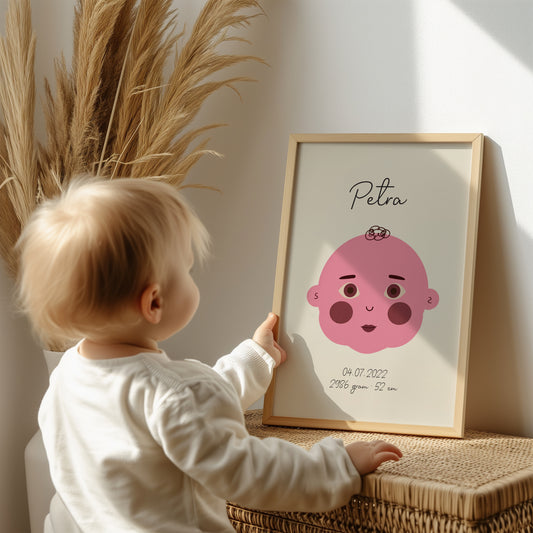 Navneplakat lyserød | Plakat med navn, fødselsdato og mål