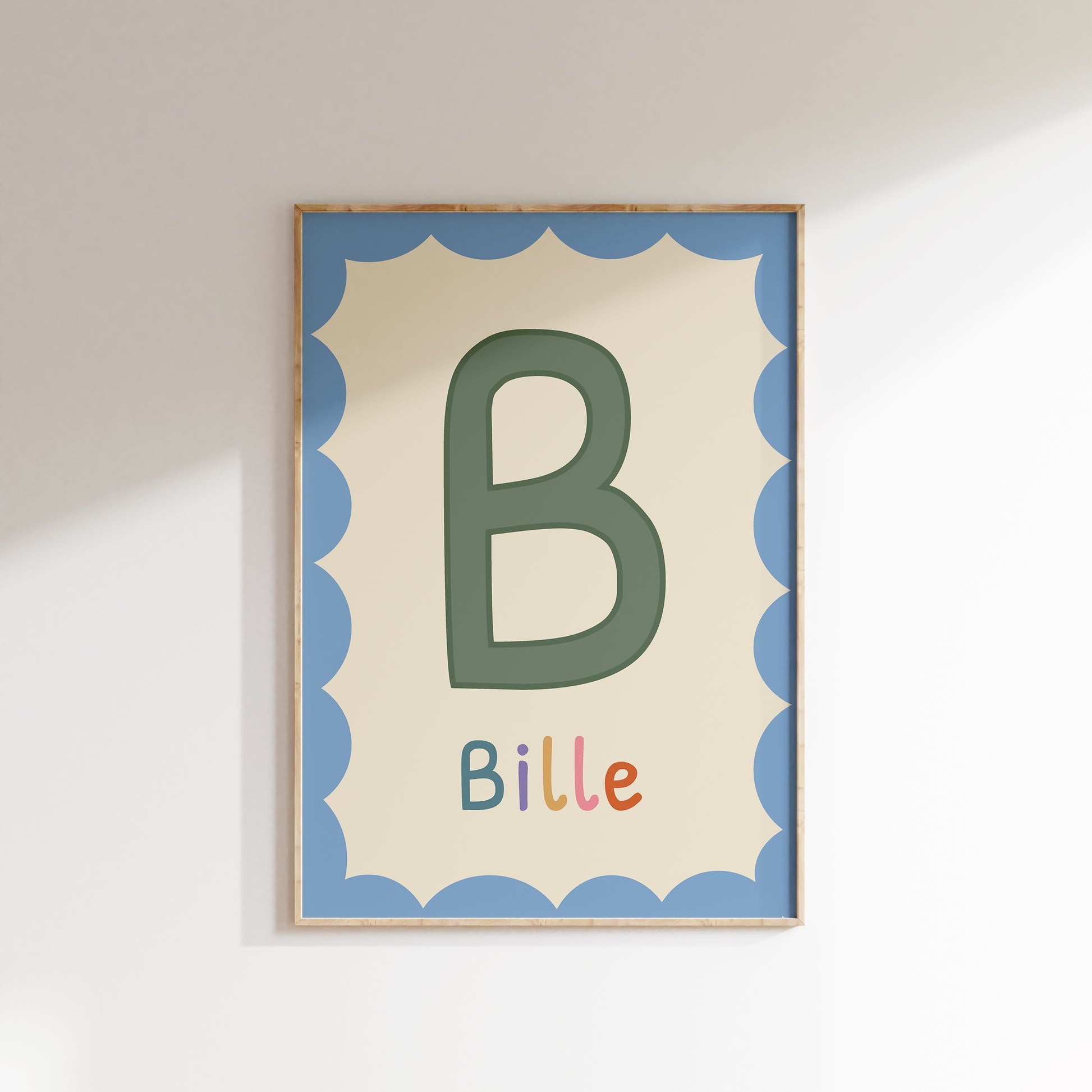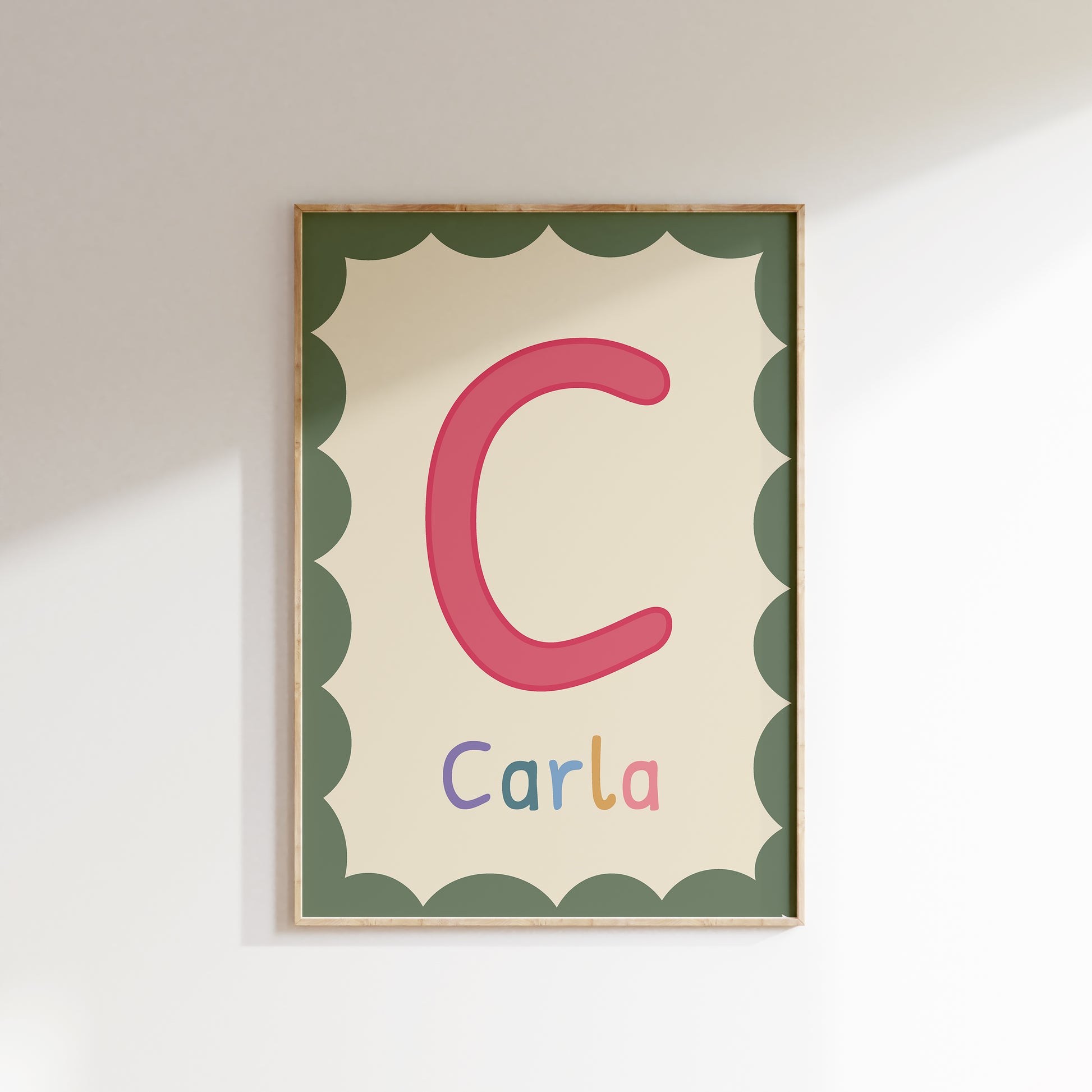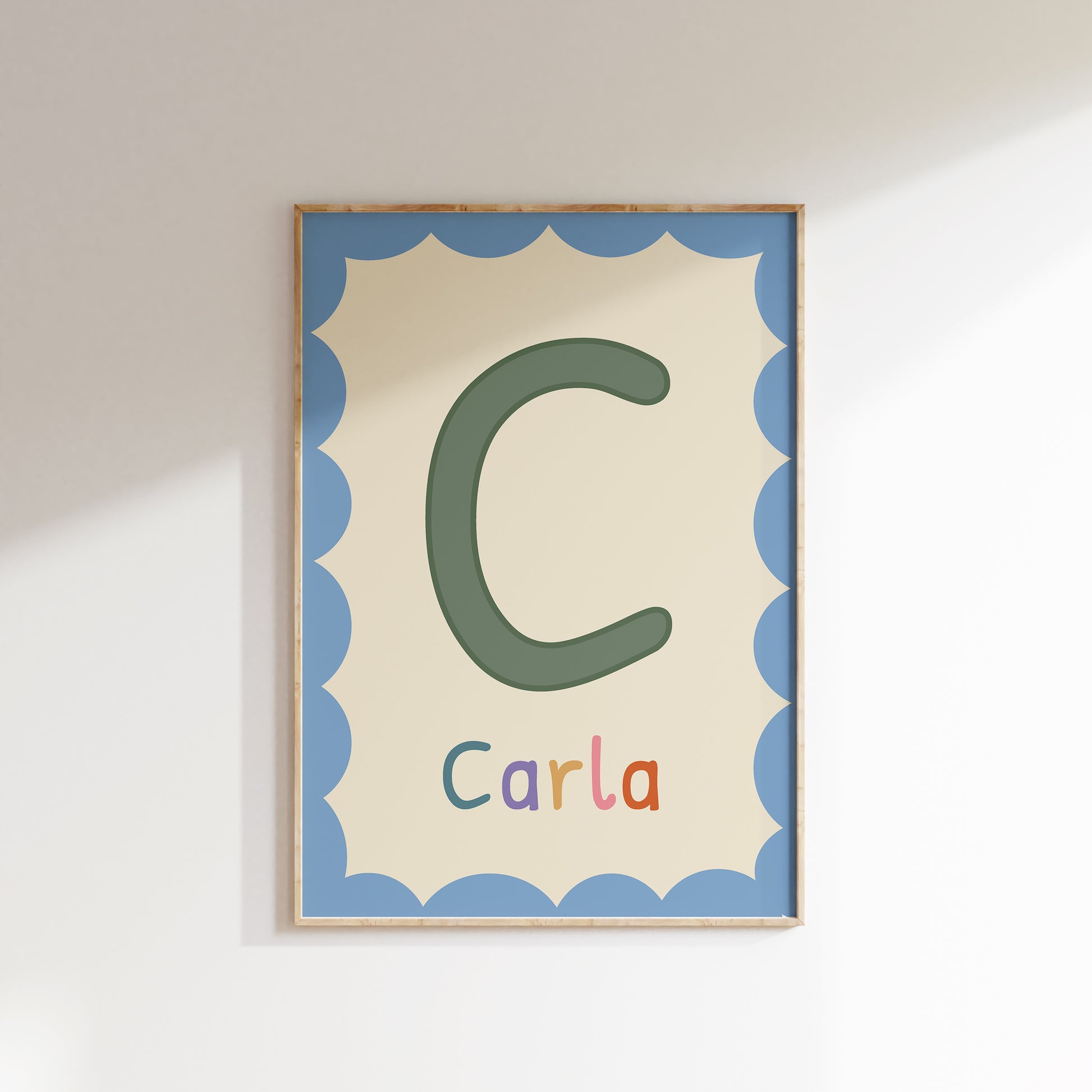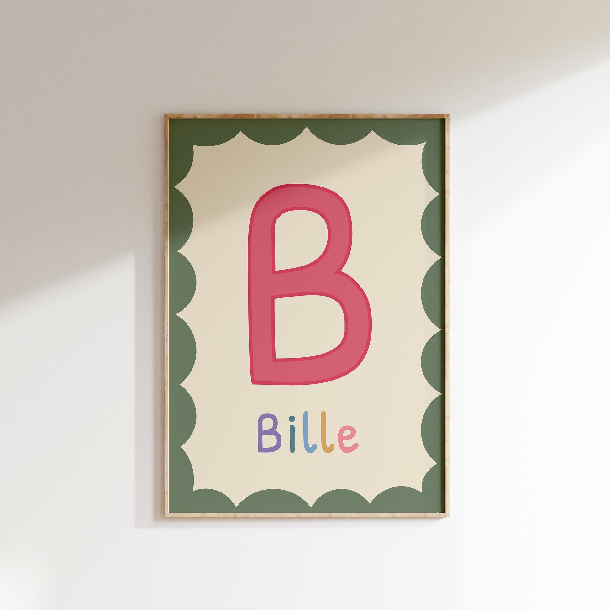Bogstavplakat med navn | Plakat med barnets forbogstav og navn