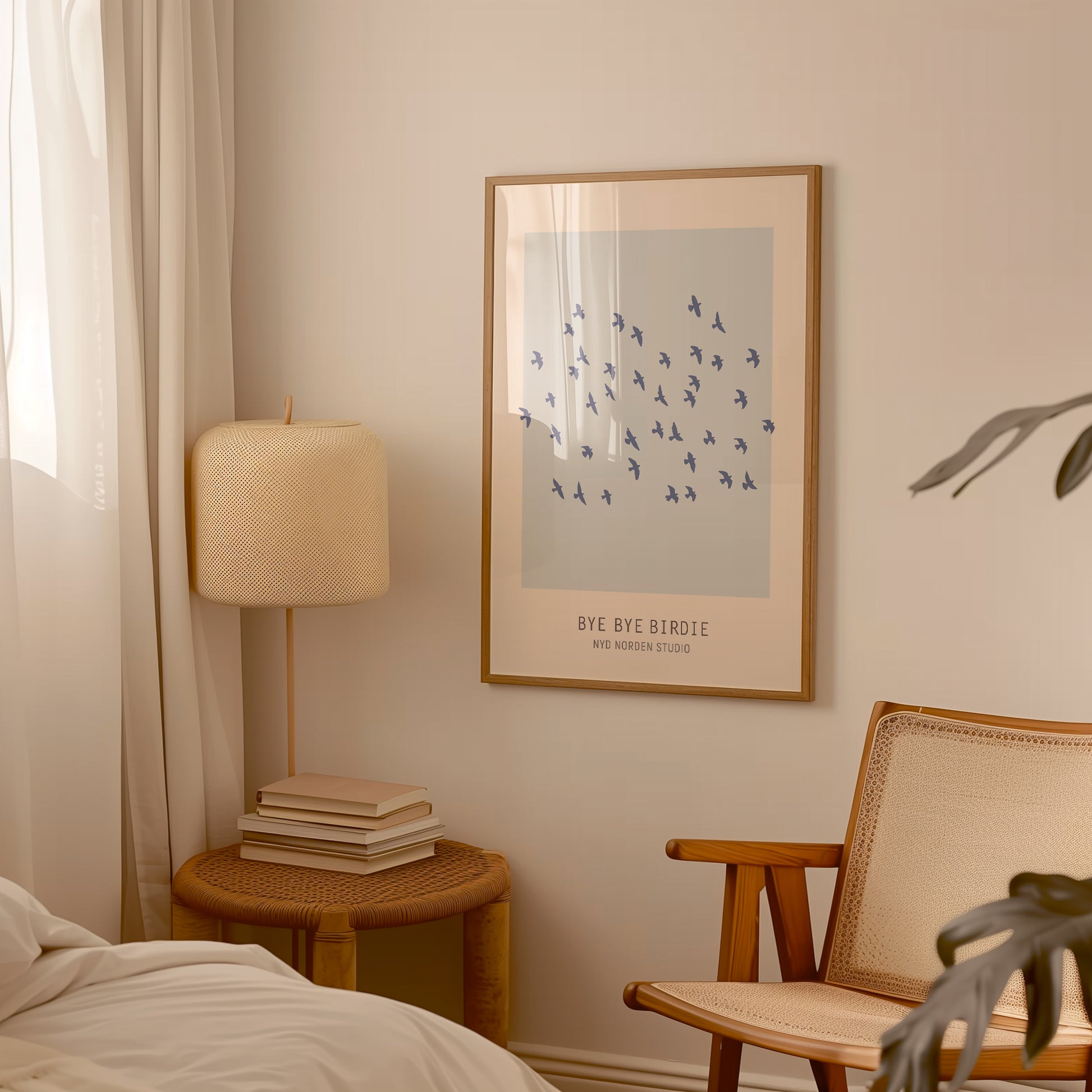 Lad frihedens lethed flytte ind i dit hjem med vores fugleplakat, Bye Bye Birdie.