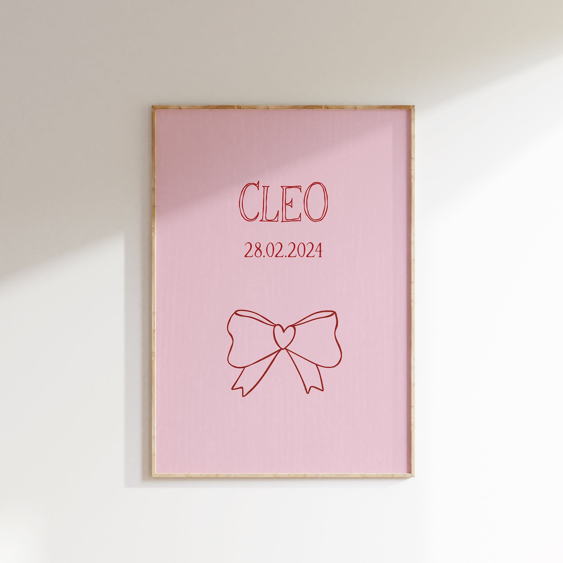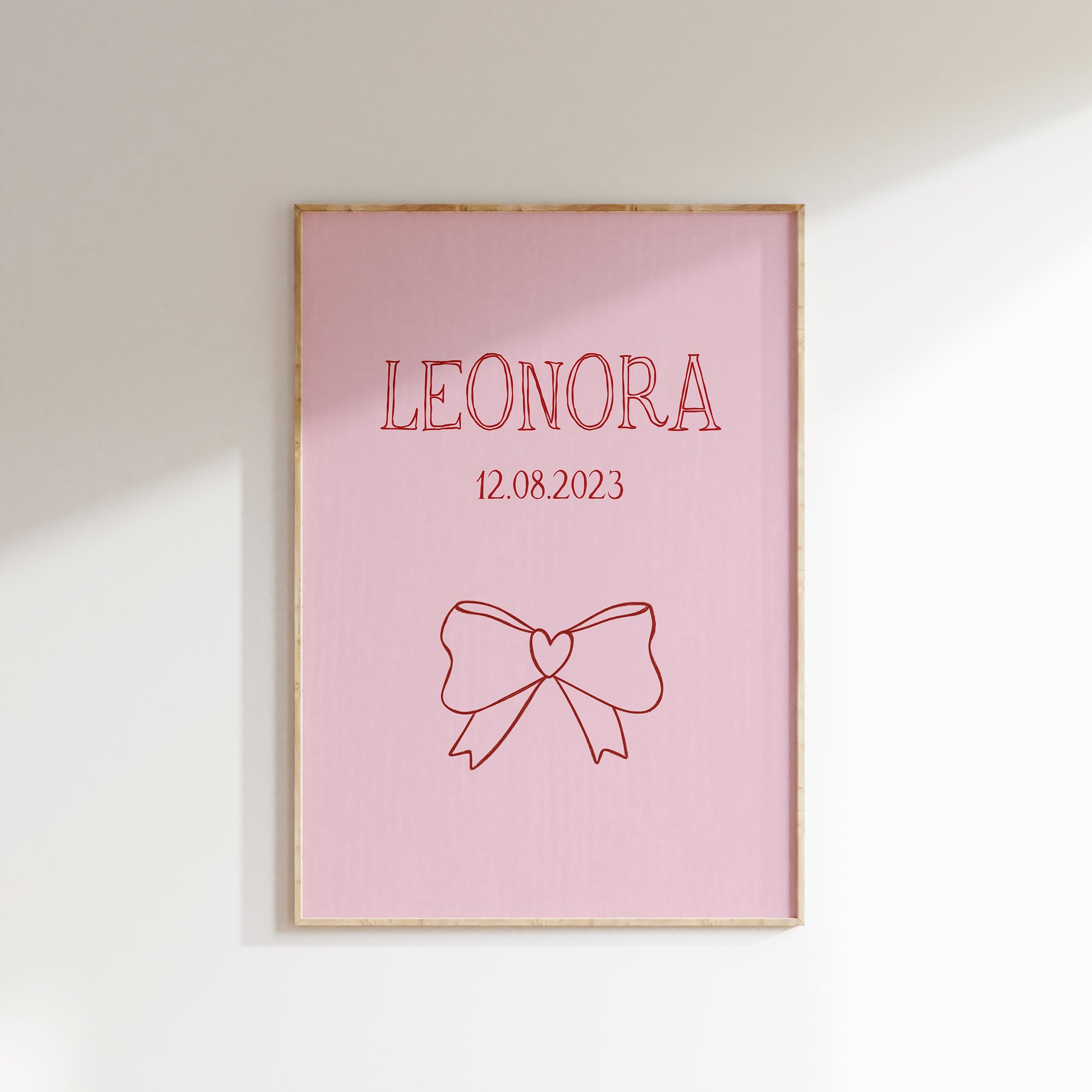 Navneplakat med sløjfe | Plakat med barnets navn og fødselsdato
